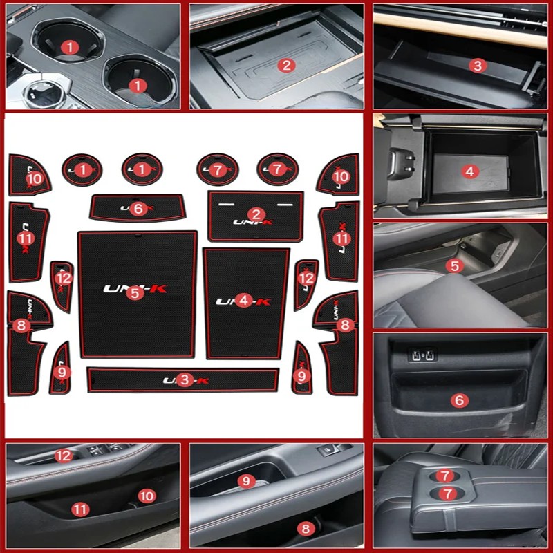 Changan UNI-K UNIK 2024 2021-2023 Car Non-Slip Mat Door Groove Pad Rubber Gate Slot Cup Cushion Decoration Auto Accessories