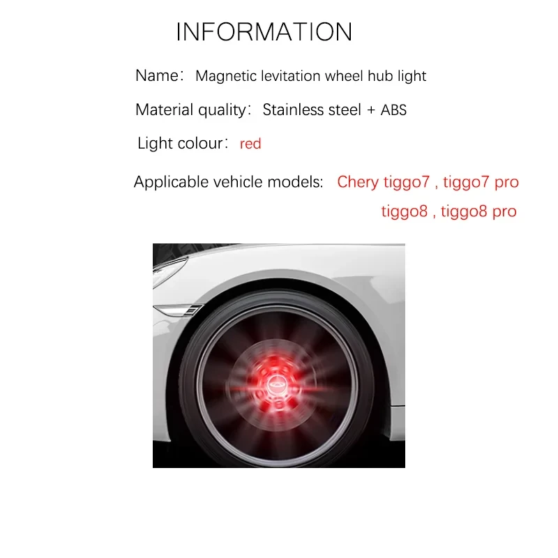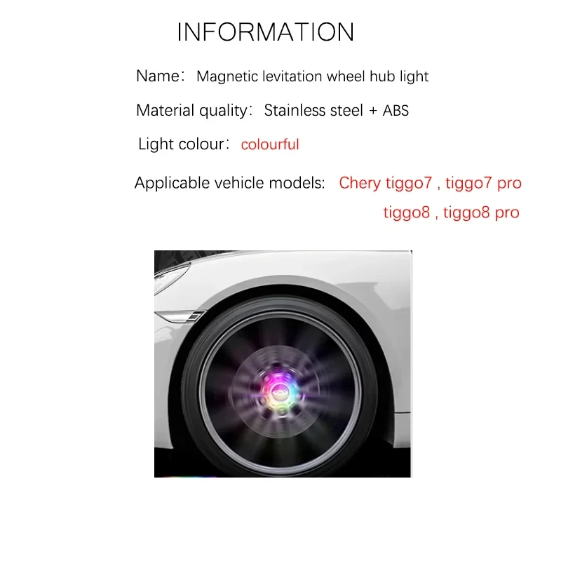 Chery tiggo 7 8 pro Magnetic Levitation Wheel Hub Light Floating Illumination LED auto