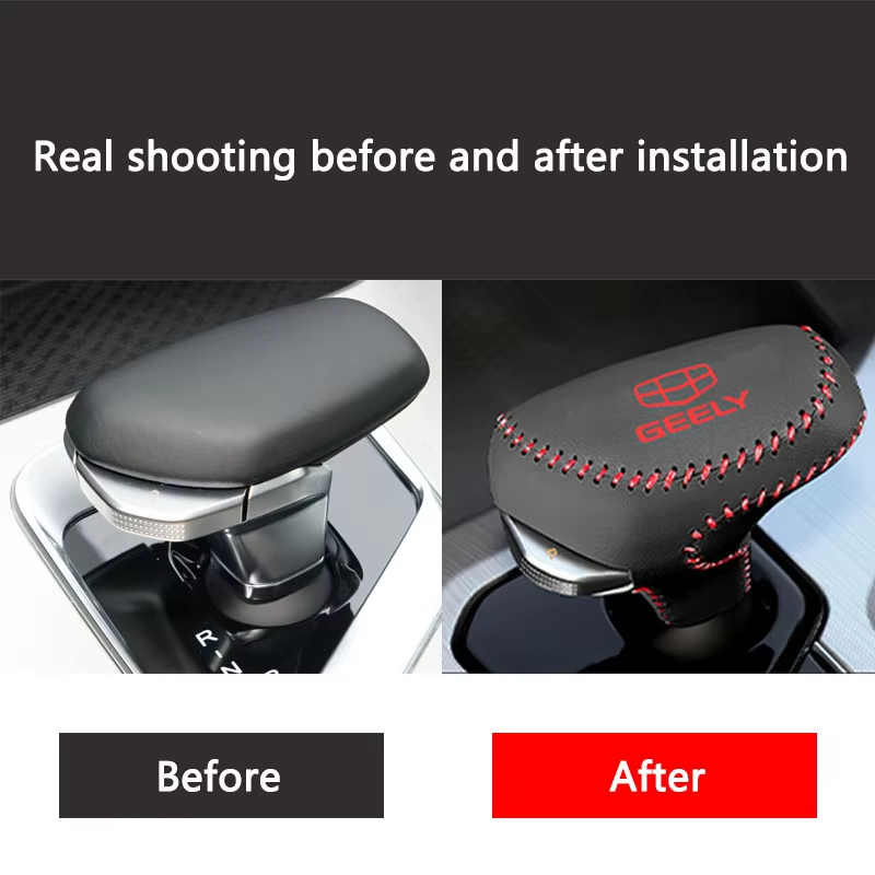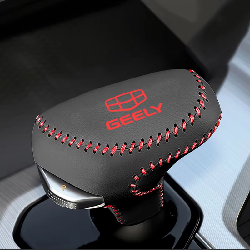 For Geely Coolray 2018-2021 BinYue Leather Shift Knob Cover Car Accessories Interior Shift Lever Cover Gear Stick Automobiles