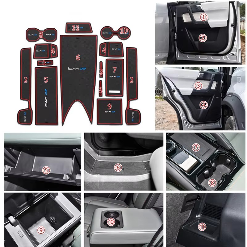 For Jaecoo J6 Chery Icar 03 2024 2025 Door Central Console Cup Storage Box Gate Groove Mat Non-slip Mats