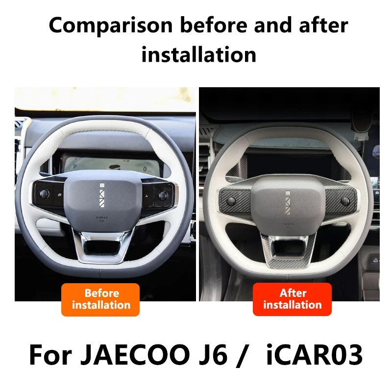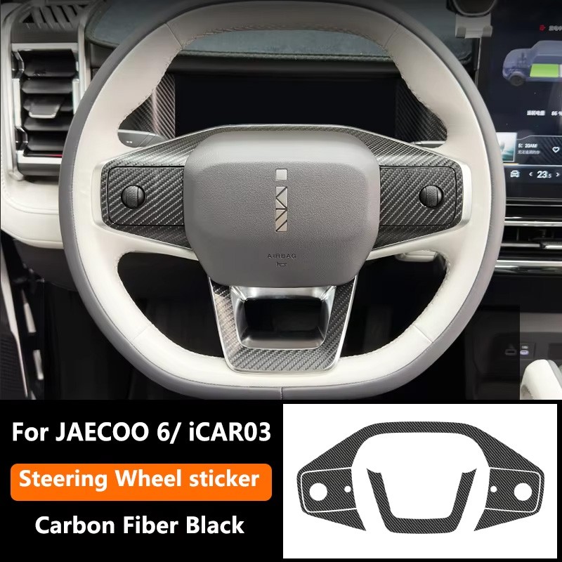 For Jaecoo J6 Chery Icar 03 EV 2024 2025 Steering Wheel Decorative Sticker Carbon Fiber Pattern