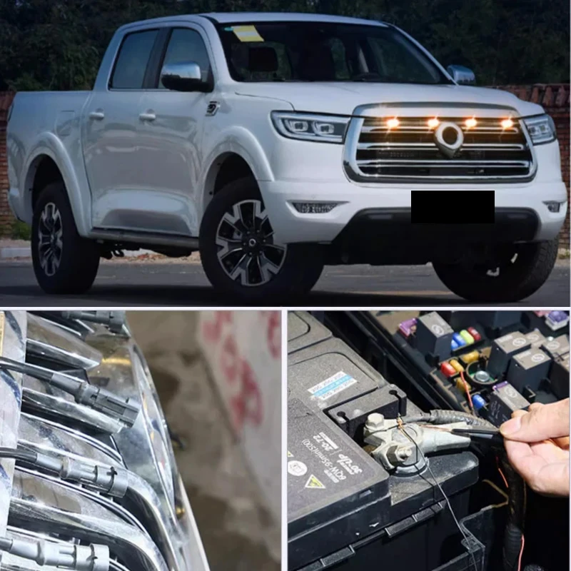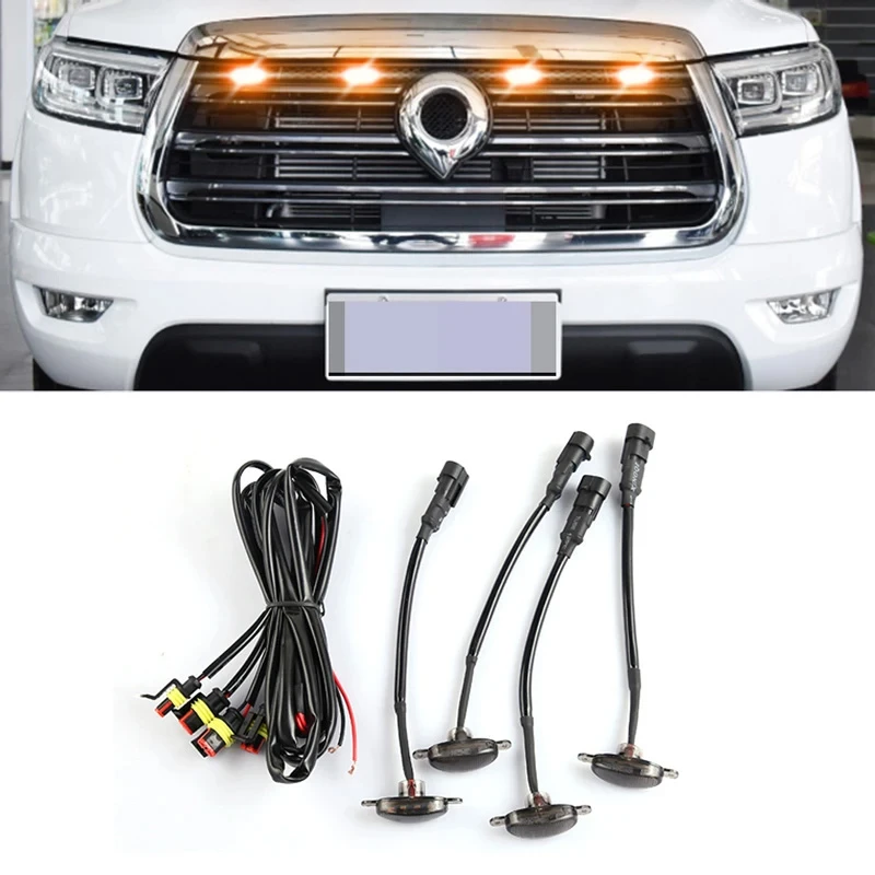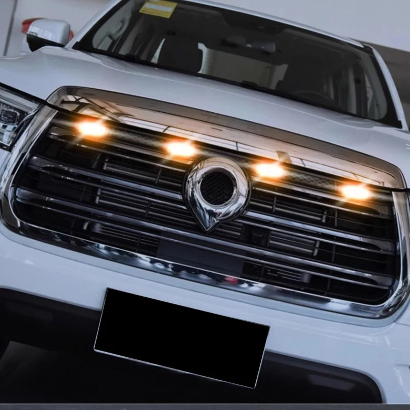 GWM Great Wall Poer 2019-2023 Car Front Center Grille Yellow LED Light Refitting Decor Lamp Night Warning